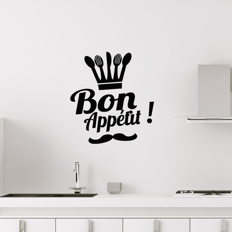 These kitchen wall decals and this wall decal Bon appétit ! can give you decorating ideas for your kitchen. With this sticker Bon appétit! as wall decoration, your kitchen is warm and will be a real living with his pace and connected by a good meal, will be ideal for evenings with family or friends.