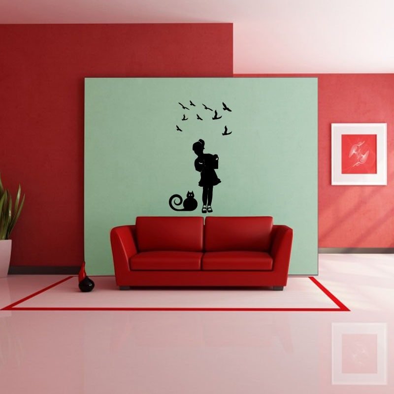 These figures wall decals and this Silhouette girl, cat and bird can give you ideas for decorating. Your kids will love this beautiful sticker Silhouette girl, cat and bird on your wall.